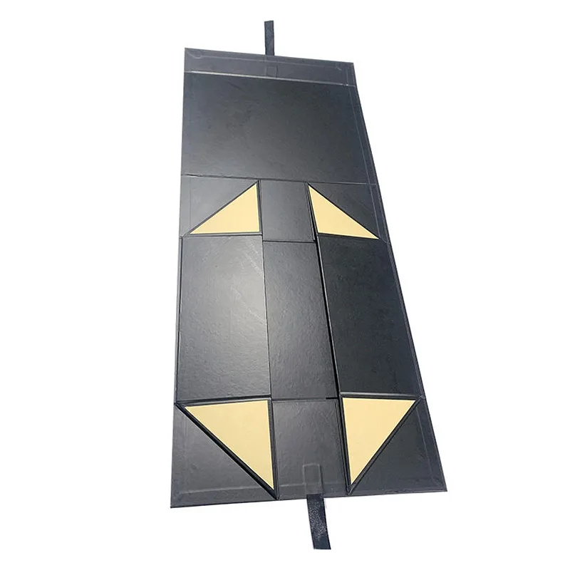 Kassen er lavet af mat sort specialpapir, og indersiden er foret med lys guldkant. Teksturen er stabil og avanceret. Når den bruges til at rumme sarte genstande såsom lædervarer, smykker og ure, kan den mørke ydre æske perfekt fremhæve gavens sarte tekstur. Følelsen af ceremoni ved åbning og lukning gør også gaveuddelingen mere værdig. De overordnede visuelle og praktiske effekter er særligt harmoniske og kompatible.
